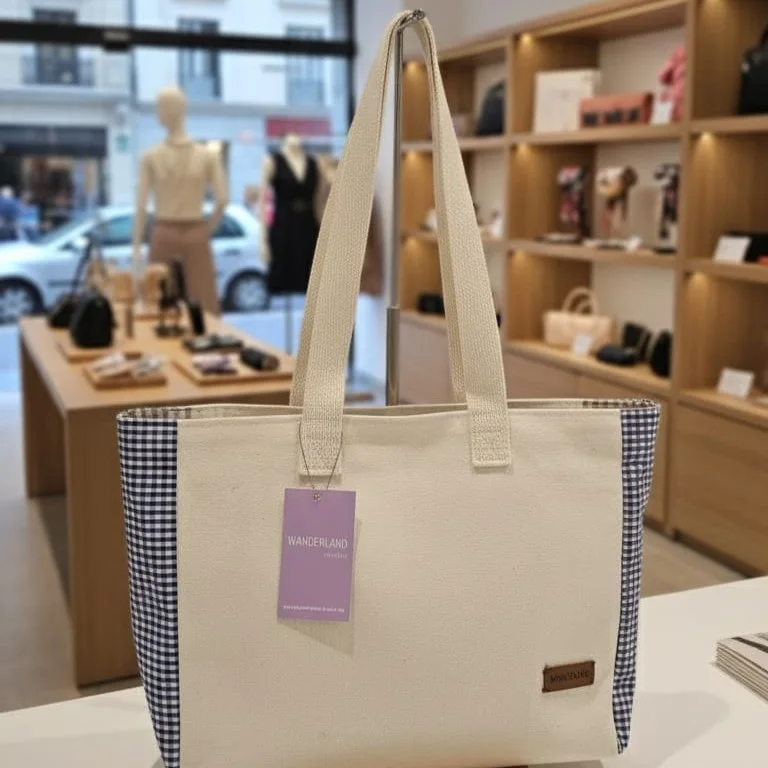 Minimaliste, chic et naturellement élégant le tote à carreaux est votre compagnon idéal au quotidien. Confectionné avec des côtés en tissu vichy, il allie charme décontracté et touche intemporelle signée Wanderland.
